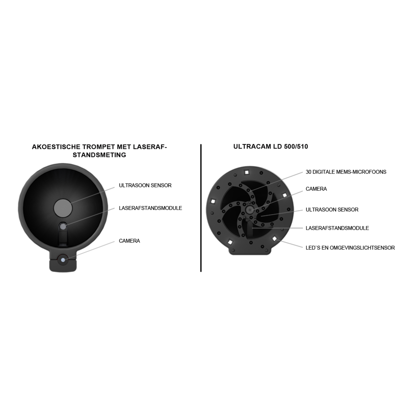 De LD 500 lekdetector meet het ultrasone geluid dat wordt gegenereerd door perslucht-, stoom-, gas- en vacuümlekken, evenals gedeeltelijke ontlading op isolatoren, transformatoren, schakelapparatuur en hoogspanningslijnen (corona-effect). Het ultrageluid, dat onhoorbaar is voor het menselijk oor, wordt door de LD 500 gemengd in het hoorbare frequentiebereik, zodat u de ultrasone bron (het persluchtlek) nauwkeurig kunt lokaliseren via het akoestische signaal op de hoofdtelefoon en het camerabeeld, zelfs in een lawaaierige omgeving.