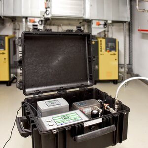 The FA 510 measures the pressure dew point down to -80 °Ctd. Here too, continuous measuring ensures that an alarm can be triggered immediately if the compressed air dryer fails.