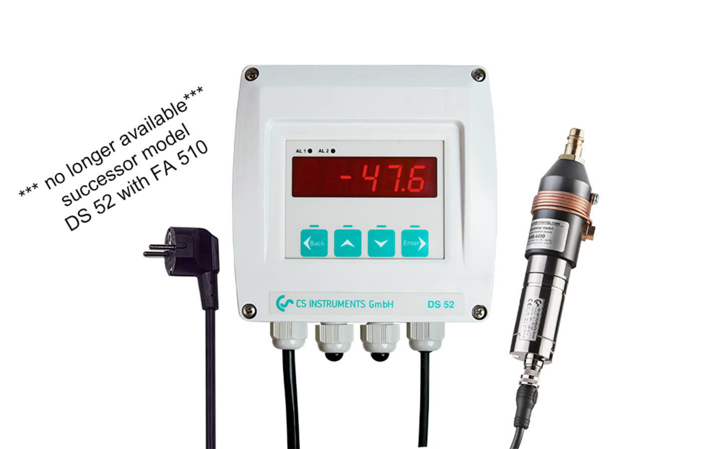 with the digital process meter DS 52 and the dew point sensor FA 510 with a measuring range from -80 to 20°Ctd.