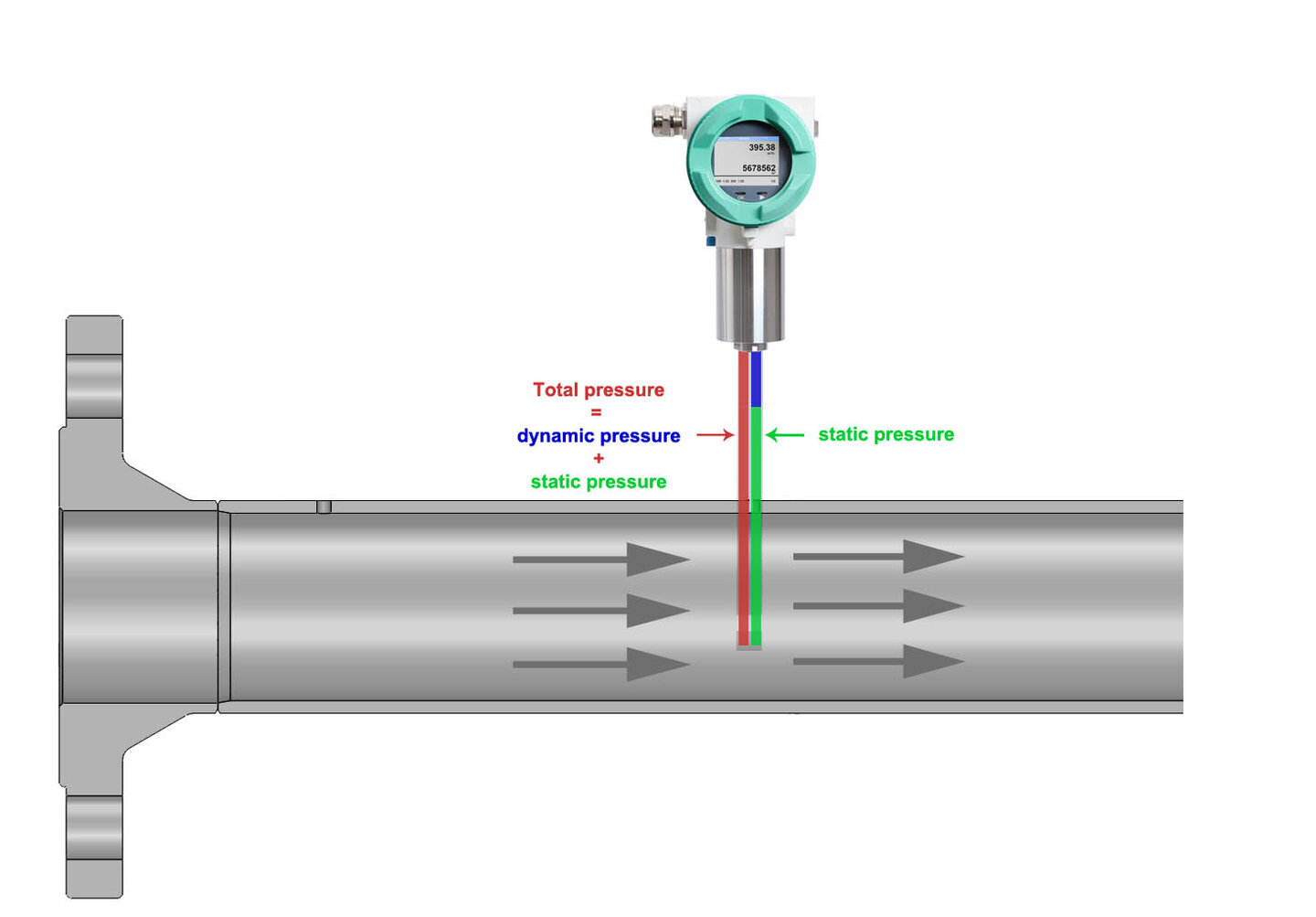 Measuring range 2 to 224 m/s / 600 m/s (Compressed air / gases) or 0.04 to 500 mbar differential pressure for Gases.
