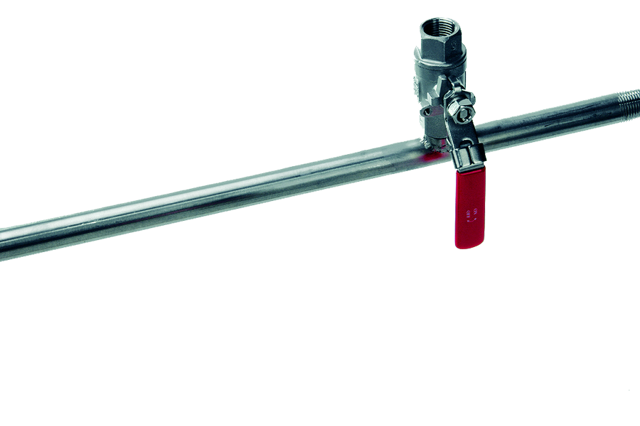 Measuring section made of stainless steel 1.4301 incl. ball valve, up to DN 65 (R2 1/2") with external thread, from DN 80 with weld neck flange according to DIN 2633.