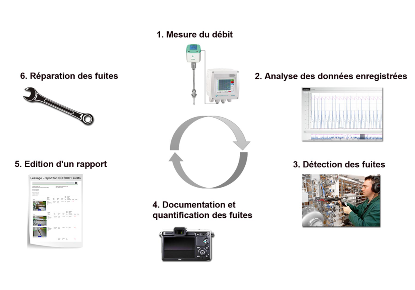 Le détecteur de fuites LD 500 mesure les ultrasons générés par les fuites d'air comprimé, de vapeur, de gaz et de vide, ainsi que les décharges partielles sur les isolateurs, les transformateurs, les appareillages de commutation, les lignes à haute tension (effet corona). Les ultrasons, inaudibles pour l'oreille humaine, sont amplifiés et traités afin que l'utilisateur du LD 500 puisse distinctement les entendre. Cela permet de localiser précisément la fuite d'air comprimé (la source ultrasonique) grâce au casque et à l'image pointée par la caméra. Ceci, même dans des environnements bruyants.
