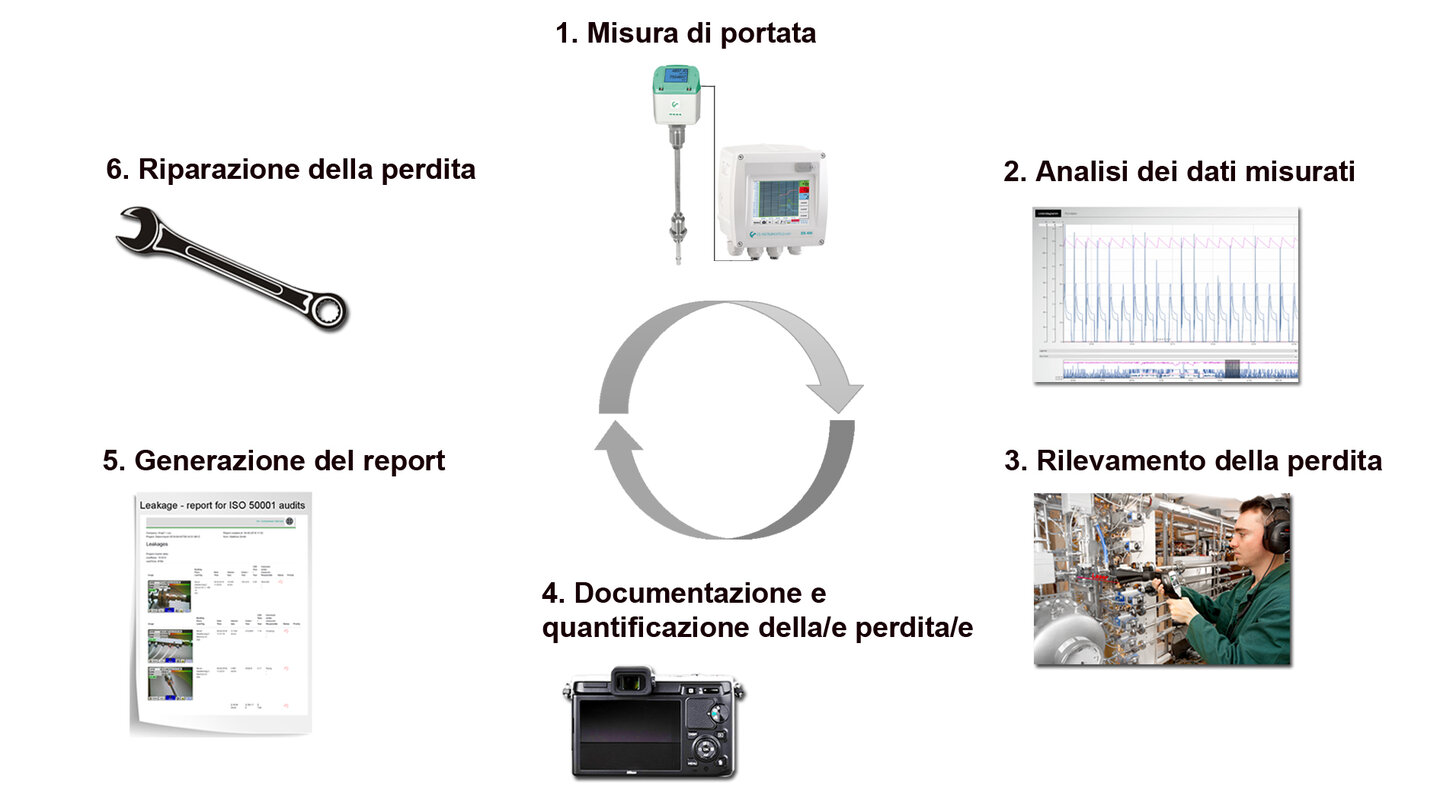 Successivamente, con pochi clic, è possibile creare rapporti automatici sulle perdite, che mostrano chiaramente tutte le informazioni sulla verifica delle stesse. In questa pagina, sotto "Downloads", troverete un esempio di report.