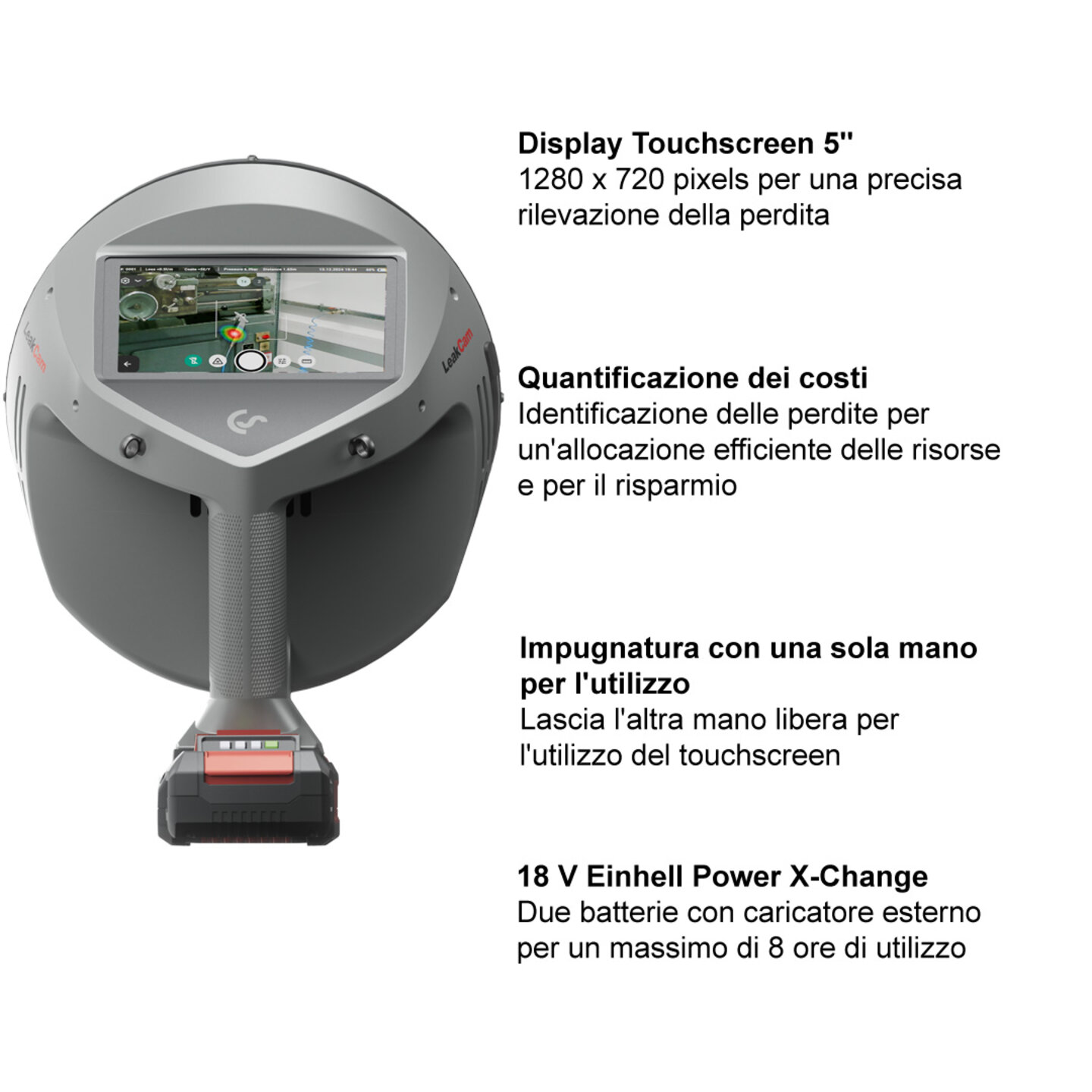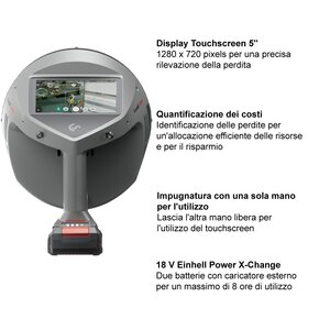 Grazie alla telecamera integrata e agli accessori in dotazione, il nostro starter kit per il rilevamento delle perdite consente, oltre a una ricerca affidabile delle stesse, anche il calcolo delle perdite e la creazione di report secondo la norma ISO 5000