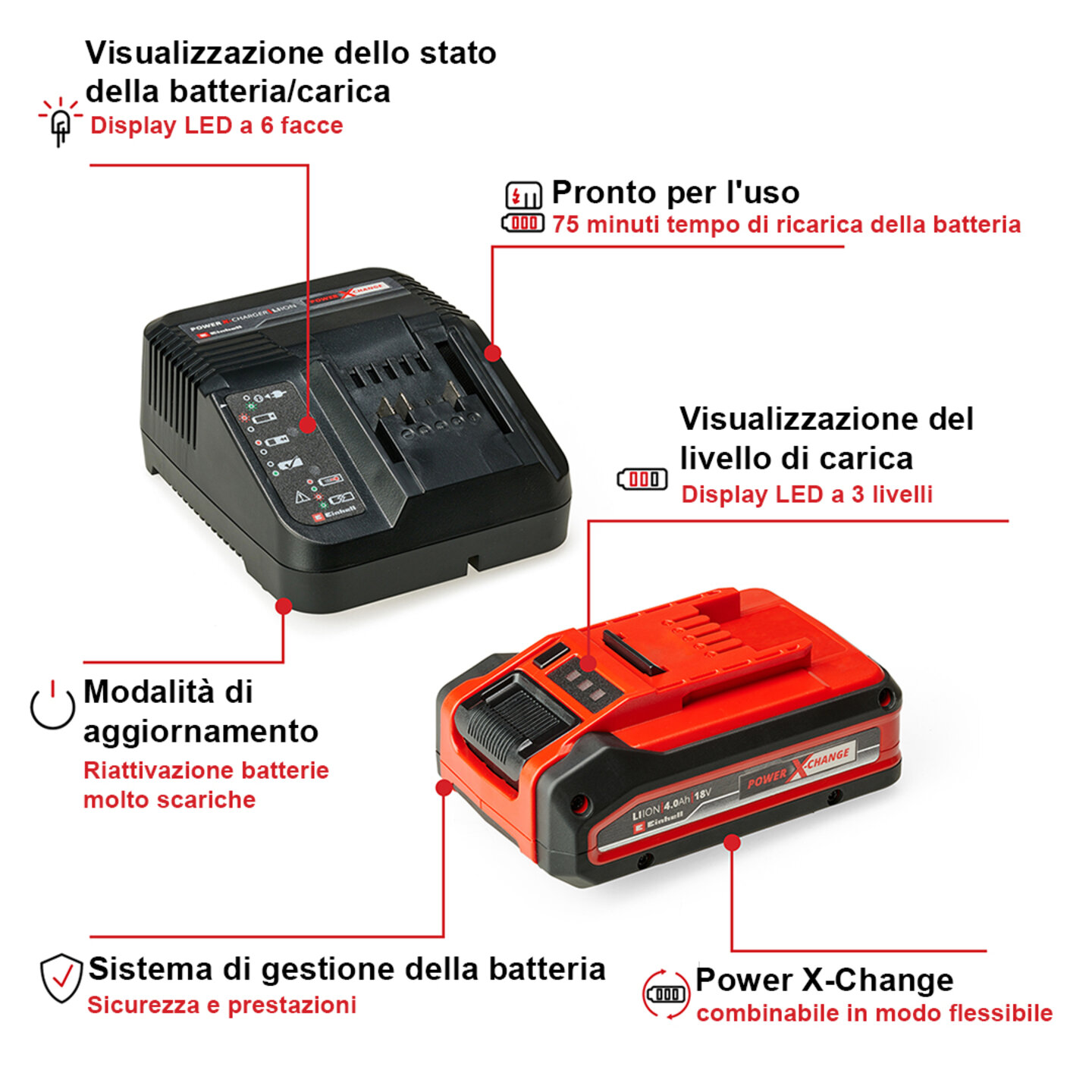 Il sistema di trasporto della LeakCam 600 offre il massimo comfort e una facilità d'uso ottimale. La cinghia trasversale inclusa nel set tiene il cercafughe in modo sicuro e a portata di mano davanti al petto. Grazie alle batterie Einhell da 18 V 2 Ah (circa 2,5 ore) e da 18 V 4 Ah (circa 5 ore) incluse nel set, si può beneficiare di un'alimentazione flessibile e di un peso minimo per un utilizzo prolungato. Con il caricabatterie esterno, è possibile utilizzare una batteria mentre l'altra è in carica, consentendo di lavorare senza interruzioni.