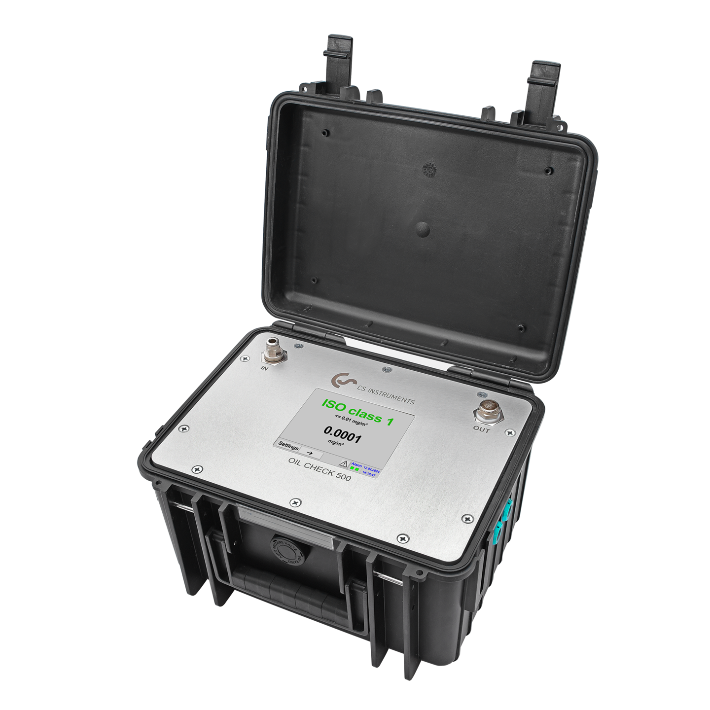 The Portable version of our monitoring system for measuring the Vaporous Residual oil content of Compressed air and Nitrogen comes in a practical case and is the ideal solution for flexible measurement at different locations.