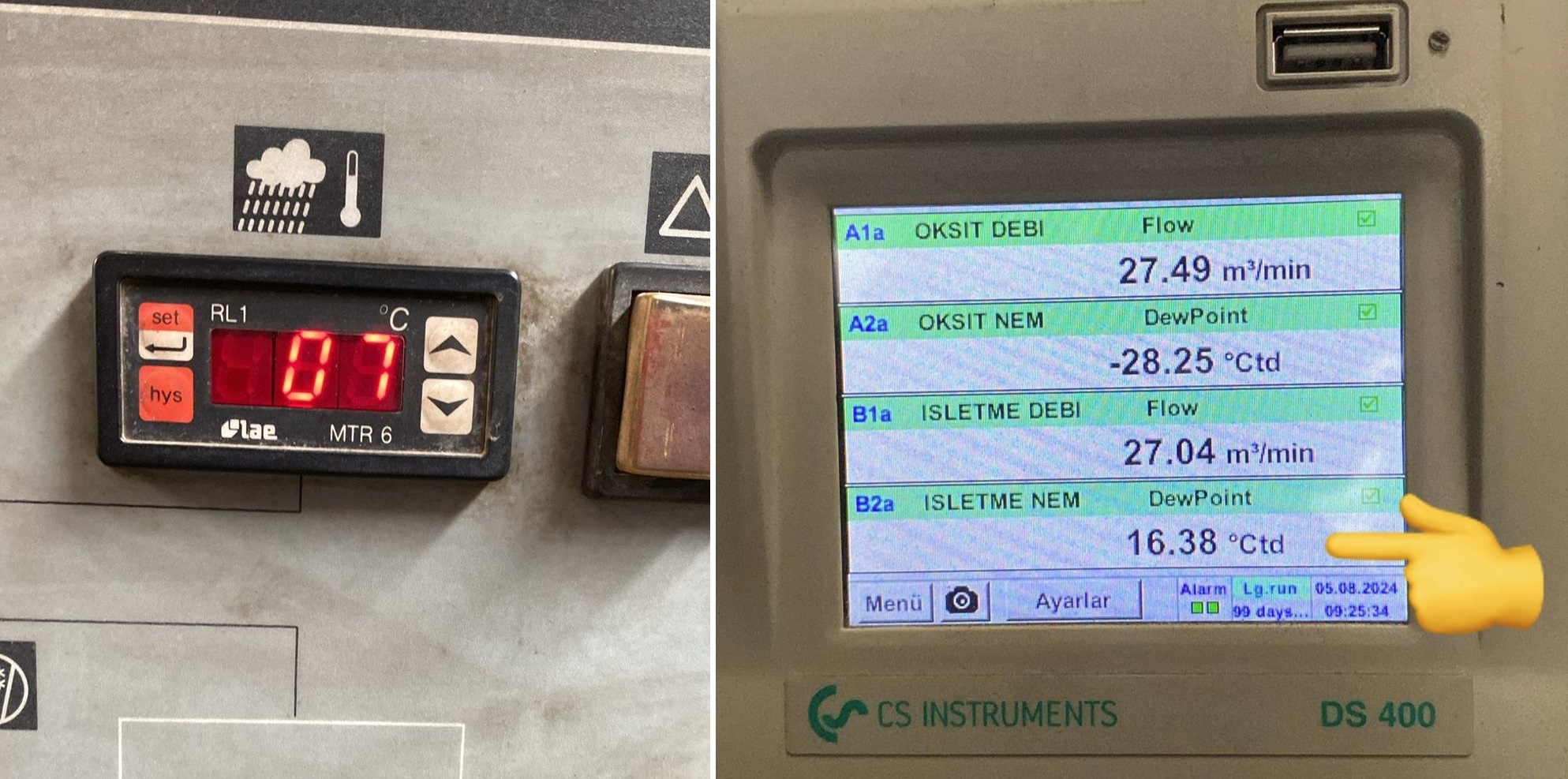 Hayır. Birçok imalatçı soğutucu gaz devresinden okunan sıcaklık değerini kurutucu ekranında gösterir. Bu sıcaklık soğutucu gaz sıcaklığını gösterse de kurutucunun içinden geçen havanın debisi, sıcaklığı ve ortam sıcaklığına göre soğutma kapasitesi yani dew point farklılık gösterir. Ekranında +3°C sıcaklık değerini gördüğünüz bir soğutuculu kurutucunun çıkışındaki dew point değeri çok daha yüksek olabilir.