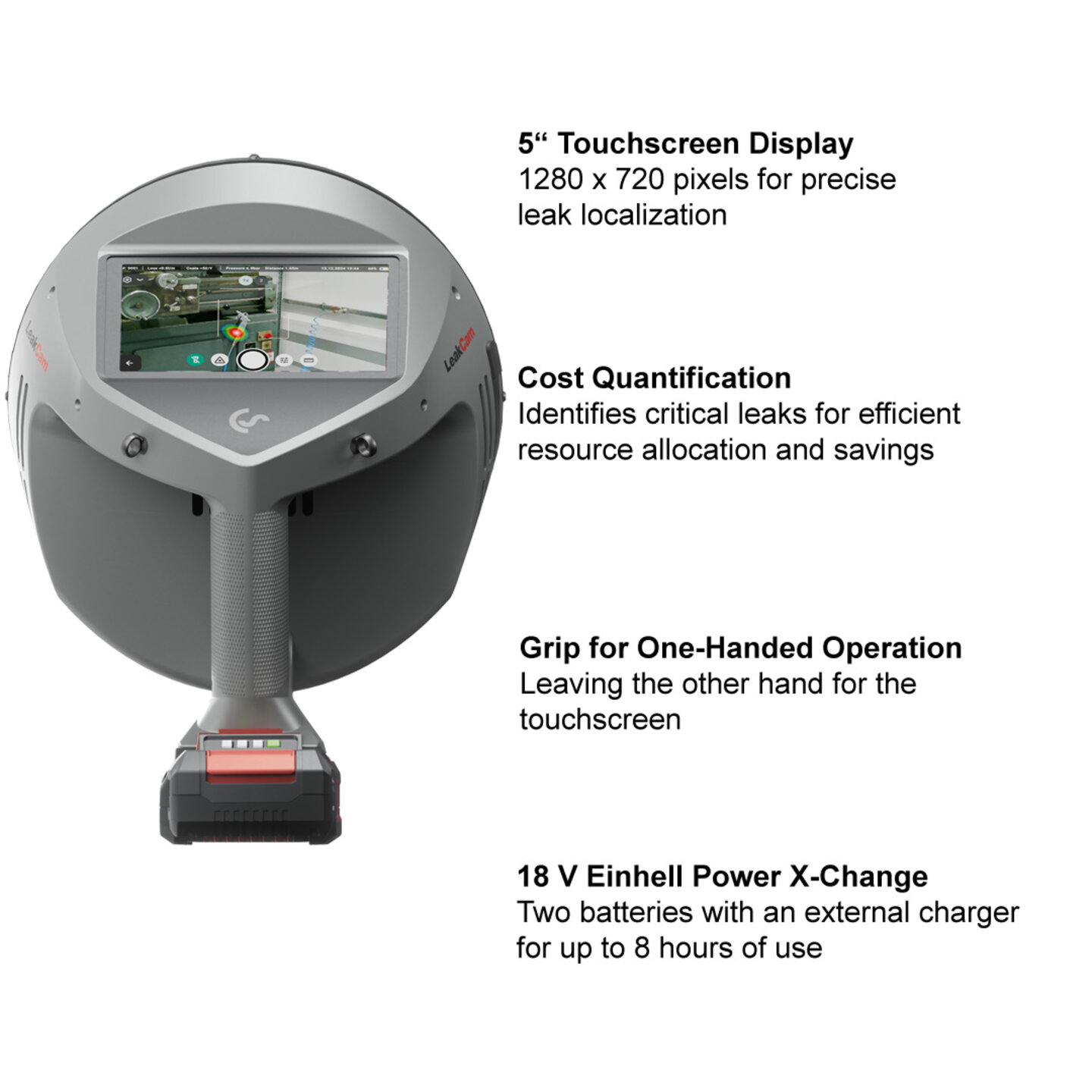 The LeakCam 600 is therefore a holistic solution for leakages management that enables significant energy and cost savings.